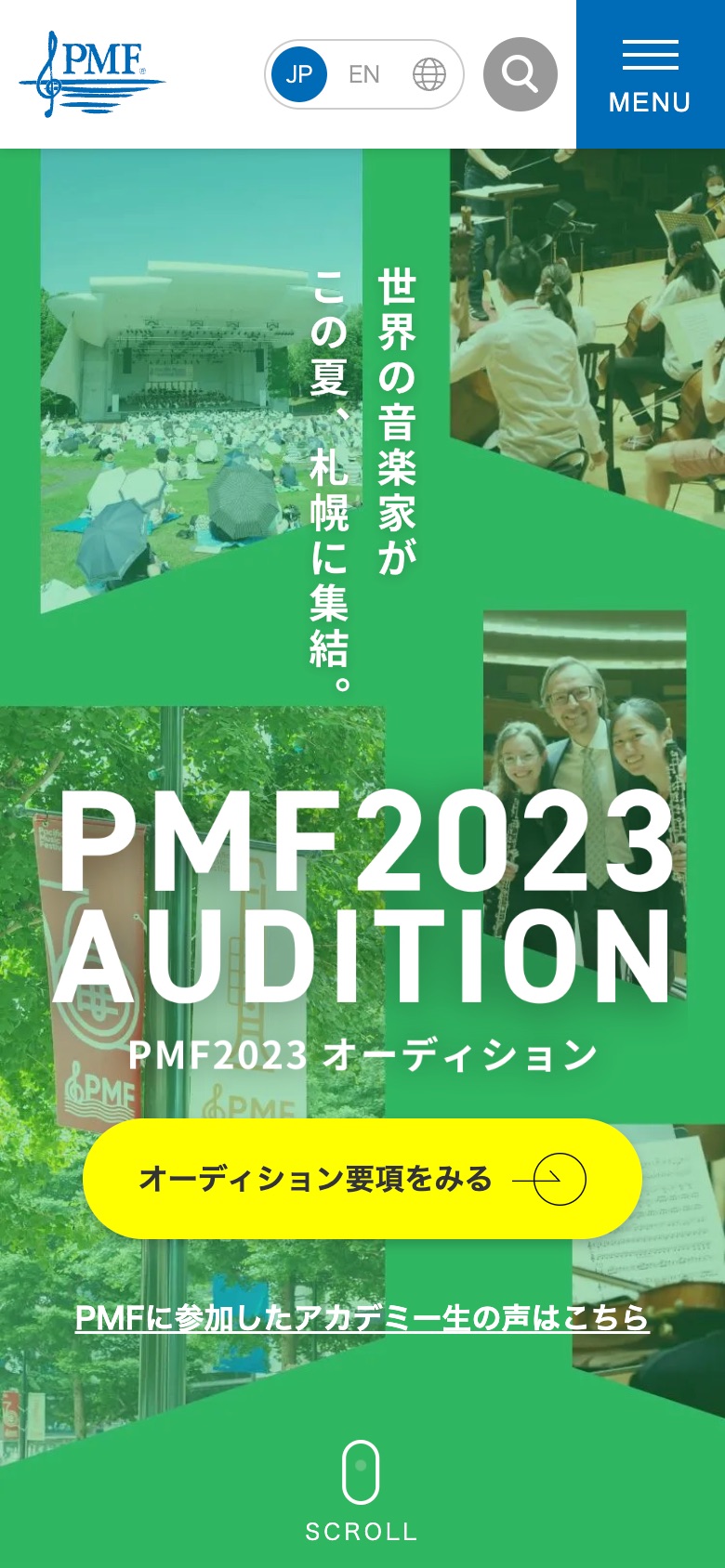 毎年夏に札幌で開催するコンサート情報や、音楽にまつわる様々なコンテンツを発信するPMF(パシフィック・ミュージック・フェスティバル札幌)のウェブサイトです。