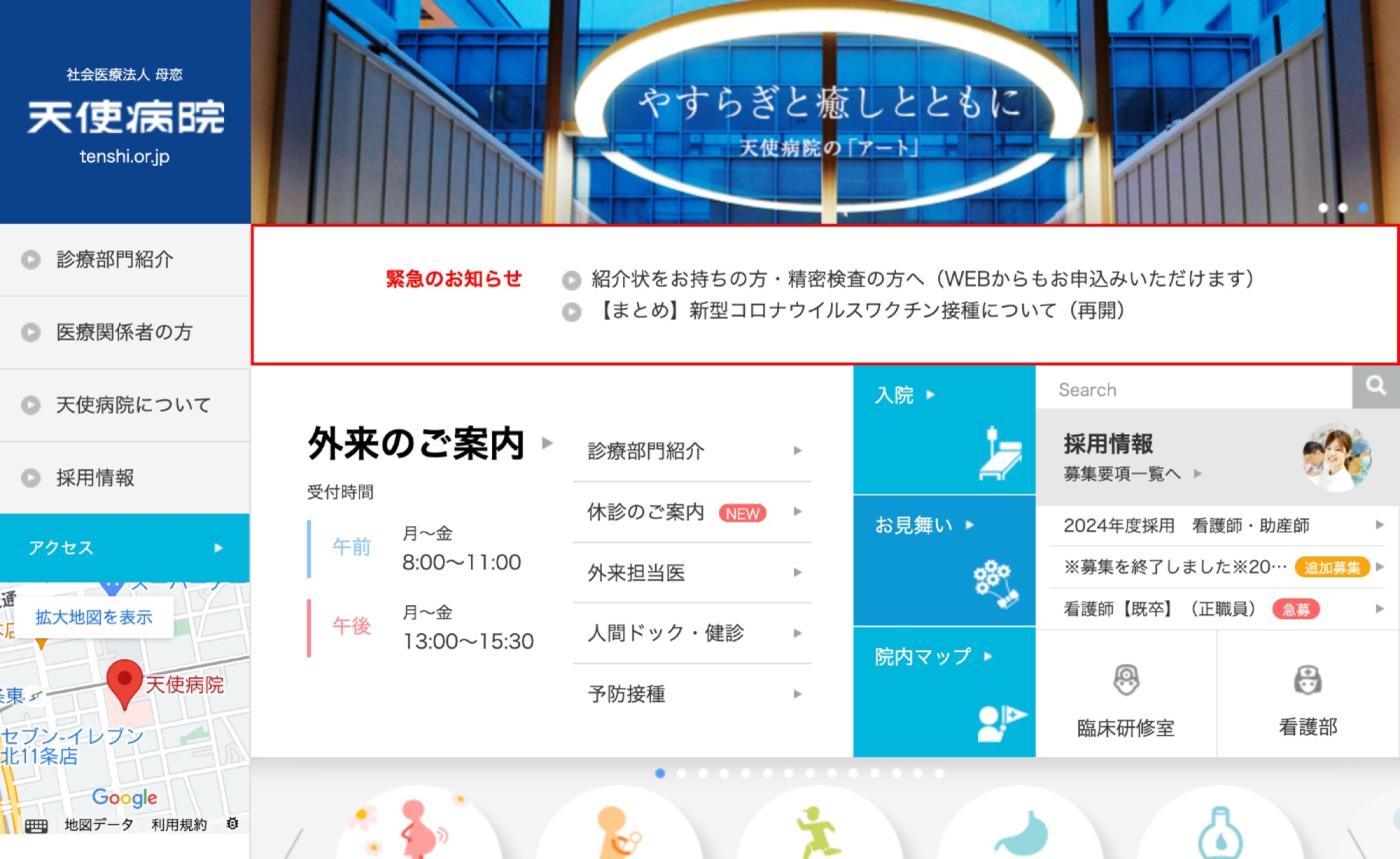 札幌の総合病院として、創立から100年以上の歴史がある病院です。産婦人科、NICU科、小児科など、多くの診療科や部署があります。患者さんが安心して利用できるよう、医療の質の向上や、施設の充実、健康診断など、地域住民に寄り添う様々な医療を提供しています。