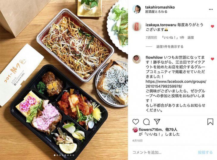 また、新型コロナウイルスの感染拡大で、テイクアウトやデリバリーをはじめた飲食店が増えた中、電話だけでなくInstagramのメッセージで注文を受け付ける店舗がありました。このように、ビジネスチャンスの拡大という意味でも、Instagramを有効に使いましょう。