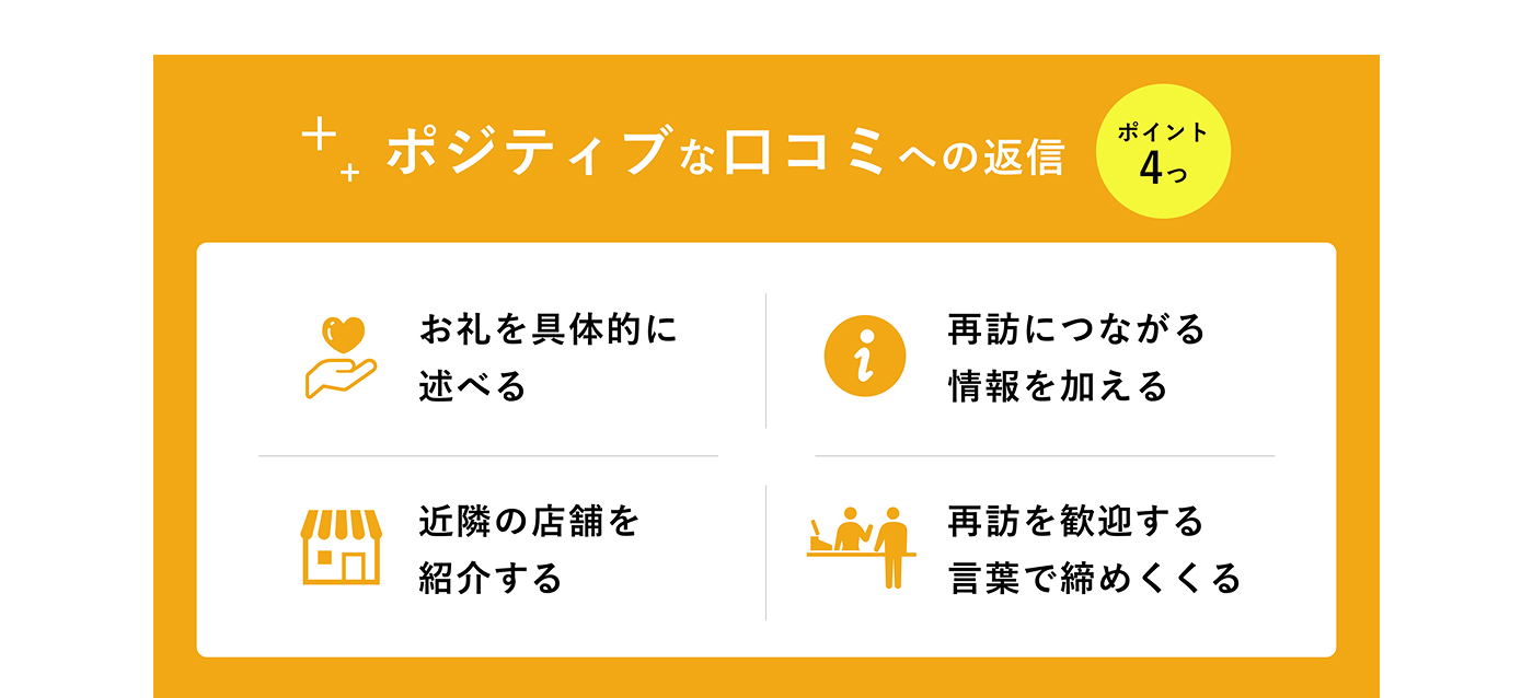- ポジティブ・ネガティブ両方に「具体性」と「再訪につながる情報」を