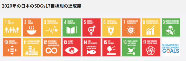 2020年時点、日本における目標別の達成進捗は、以下のとおりです。