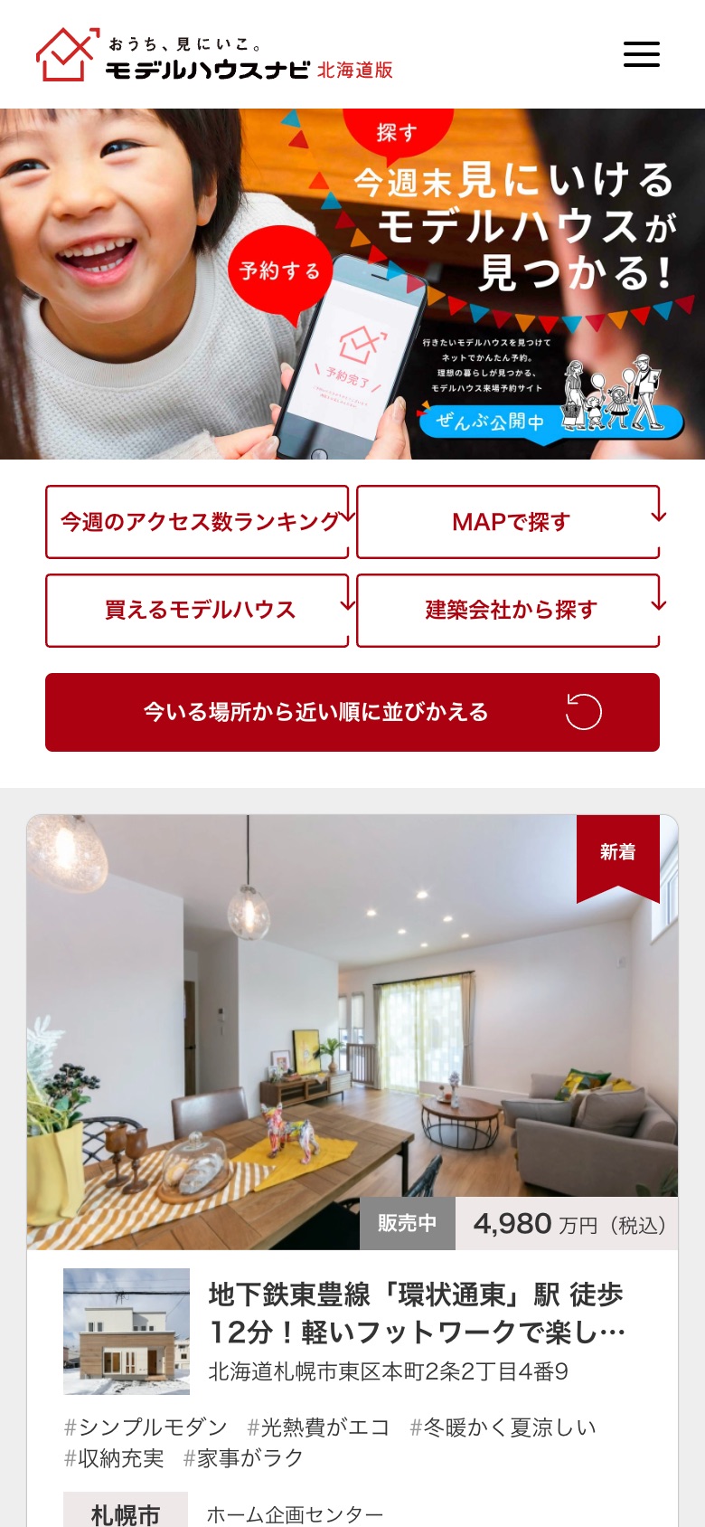 モデルハウスナビは、注文住宅に特化したモデルハウス情報Webサイトです。全国各地のモデルハウスが多数掲載されており、3Dスキャンした立体画像で建物の中を俯瞰で見て、360°見渡すことのできるバーチャルモデルハウスも豊富に揃っています。行きたいモデルハウスを見つけて、ネットでかんたん予約ができるので、理想の暮らしに近づくことができます。