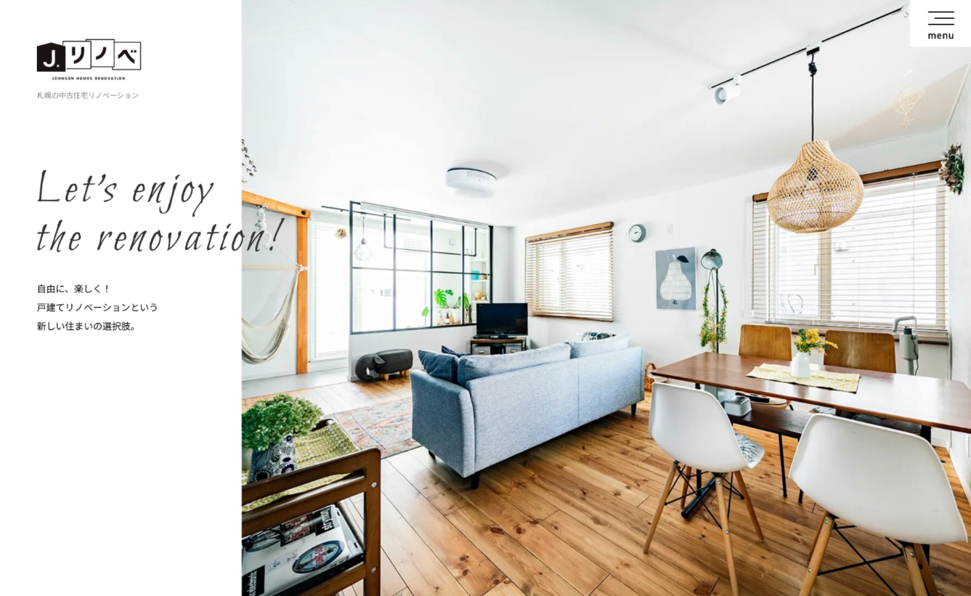 J-リノベは札幌を中心とした、木のぬくもりや素材の風合いとともに家族とともに育てていく中古住宅+リノベーションの家をお届けしています。木のぬくもりや素材の風合いとともに、家族とともに育てていく家。花を飾ったり、手作りをしたり、片付けをしたり。いつもより、ひと手間かけたくなる、その時間が楽しくなる。暮らしの温度がちょっとあがる毎日がはじまります。