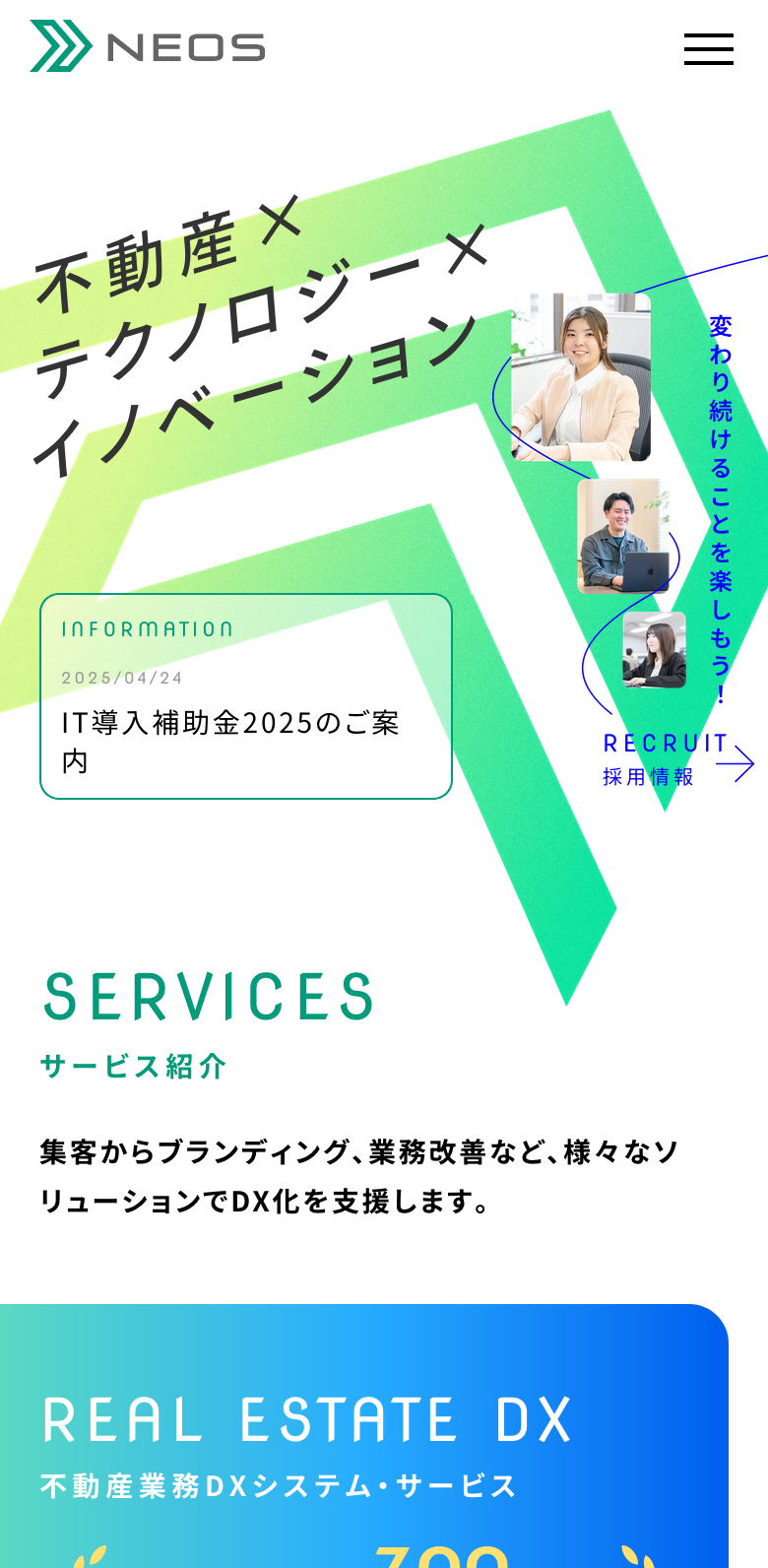 不動産管理における課題を、システム開発・クラウドサービス・DX運用支援などで解決する株式会社ネオス様のコーポレートサイトをリニューアルさせていただきました。