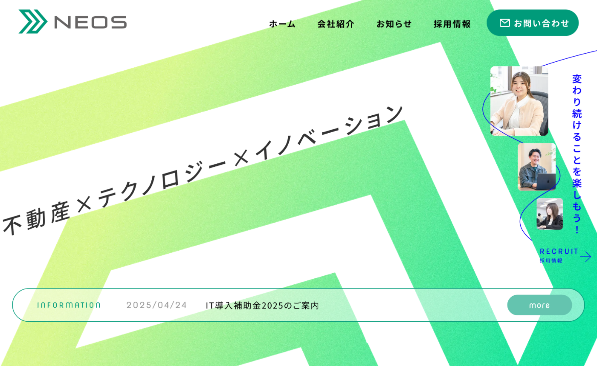 株式会社ネオスは、不動産会社へのシステム開発・クラウドサービス提供、不動産業務におけるDX運用支援、不動産会社へのWEBサイト制作、マーケティング支援などを展開しています。