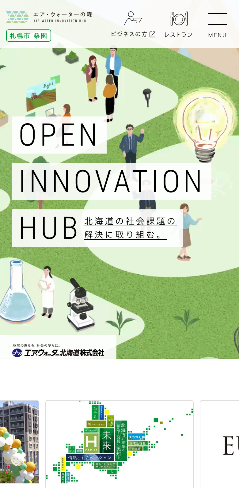 エア・ウォーター北海道株式会社が展開する「エア・ウォーターの森」は、北海道の知と強みを活かして新しいビジネスとイノベーションを生み出すオープンイノベーション施設です。札幌市桑園に位置し、大学や自治体、地元企業、スタートアップ、地域住民との連携を深めながら、主に「農業と食」および「カーボンニュートラル」をテーマに地域社会の課題解決に取り組んでいます。エア・ウォーターグループの食材を活用したレストラン・カフェ、キッチンラボ、コワーキングエリアなど、多様な取り組みを展開しています。