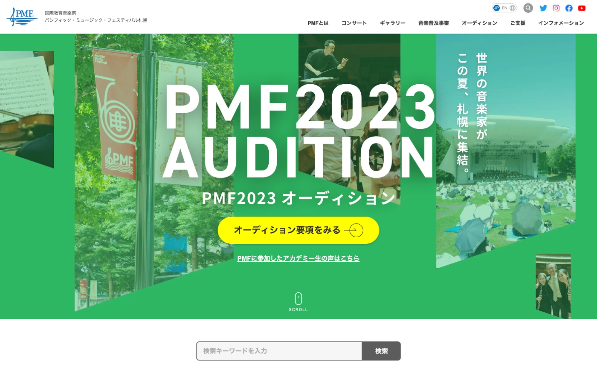 毎年夏に札幌で開催するコンサート情報や、音楽にまつわる様々なコンテンツを発信するPMF(パシフィック・ミュージック・フェスティバル札幌)のウェブサイトです。