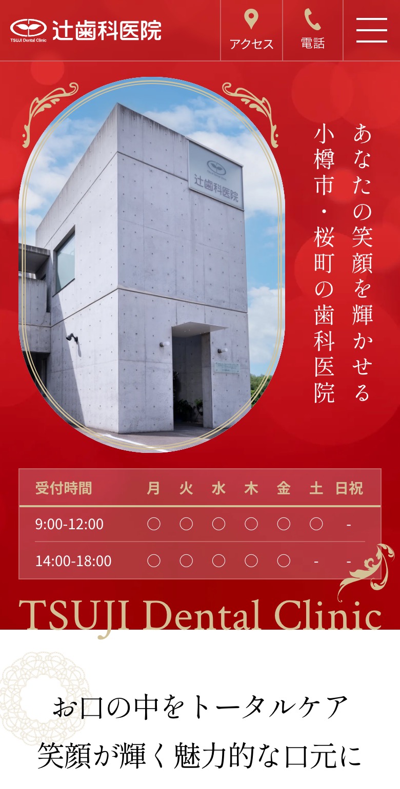 小樽市桜町の「辻歯科医院」のサイトリニューアルをいたしました。以前はPCのみに対応したスタティックなウェブサイトでしたが、今回のリニューアルでスマートフォン対応を実現しました。これにより、特に審美歯科を求める若い方々へのアプローチを強化し、サイトからの集患促進に繋げられました。また地域性を重視し、小樽市内だけでなく、小樽近郊のエリアからも患者様を迎え入れることを目指しました。