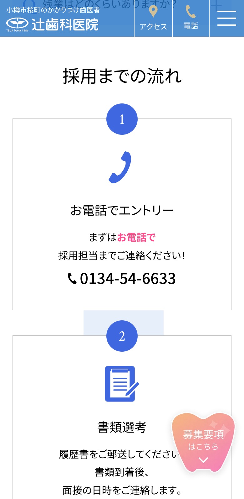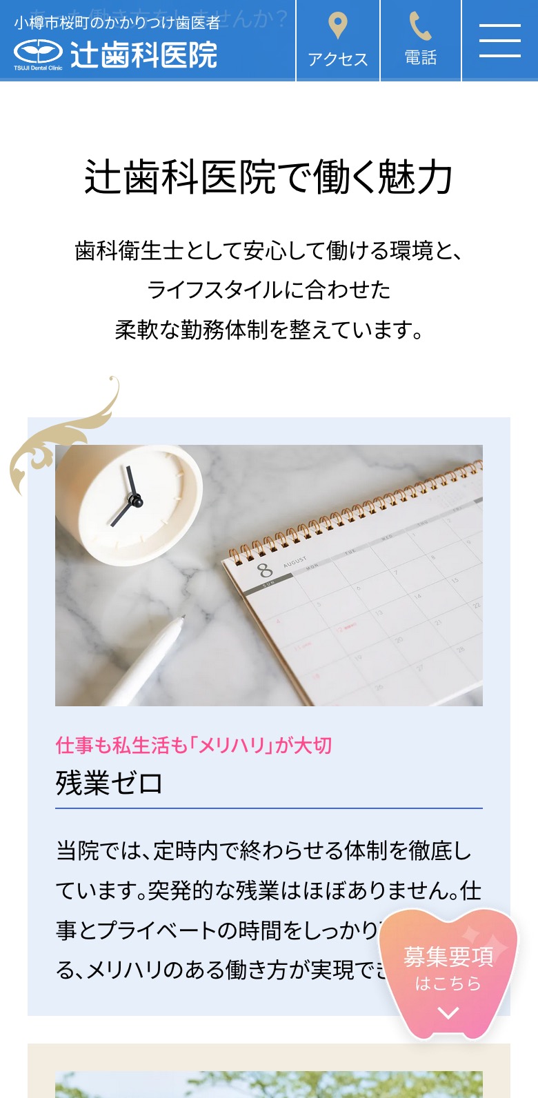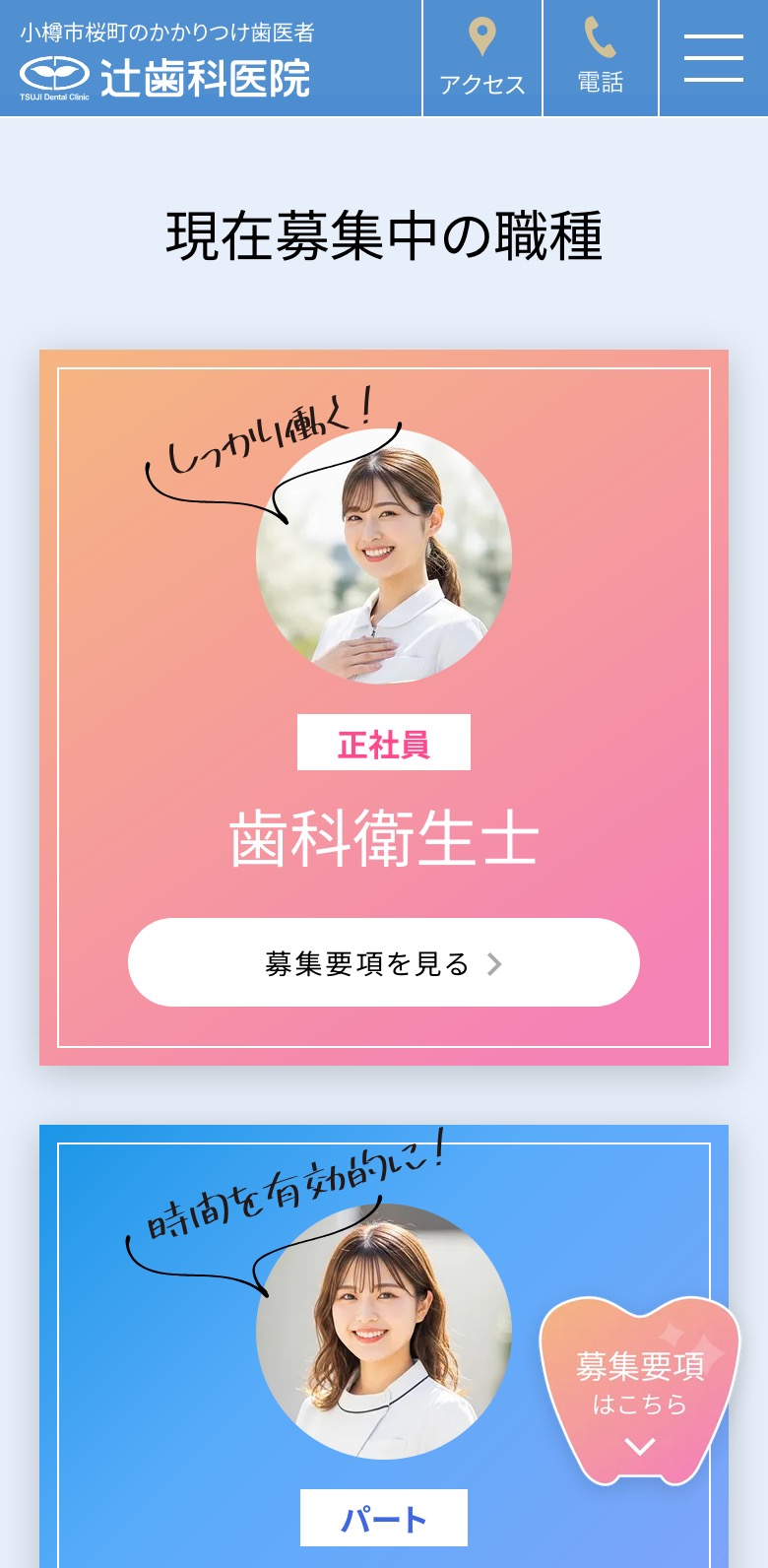 小樽市桜町の「辻歯科医院」の歯科衛生士採用の強化を目的とした採用サイトを制作しました。